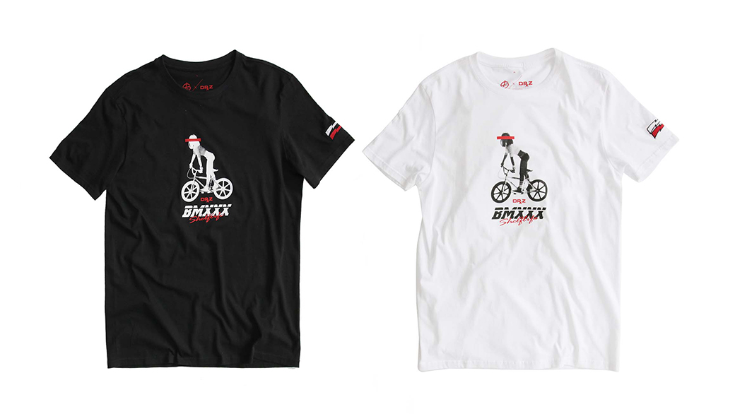 The BMXXX graphic tee features a half tone screen print on the front with signature embroidered DrZ lightning bolts on the sleeve and DrZ X Shelflife logo on the back. The t shirt is made from 100% combed cotton.