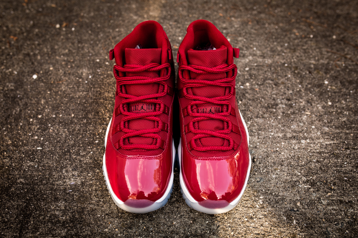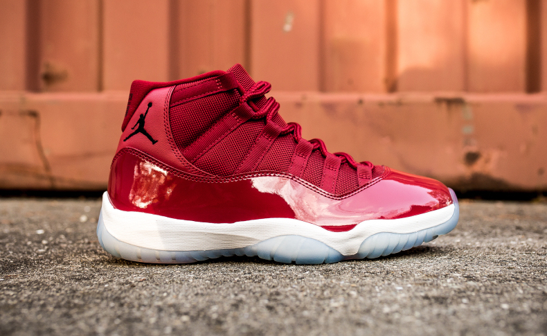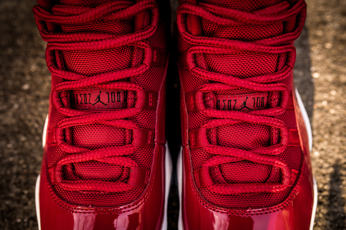 Dressed in a Chicago-inspired Gym Red, Black and White color scheme. This Air Jordan 11 features a Red mesh upper with Black Jumpman branding and the number “23” appearing on the back heel. A matching Red inner liner and laces atop a White midsole and icy translucent outsole completes the deigns. Its updated patent leather mudguard shape is a bit higher to look more authentic to the original samples designed by Tinker Hatfield.