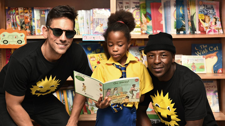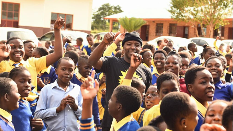 Danny K and Kabelo Mabalane awarded learners at Matsavane Primary school in Bushbuckridge (Mpumalanga) with a fully-fledged library through by SHOUT.