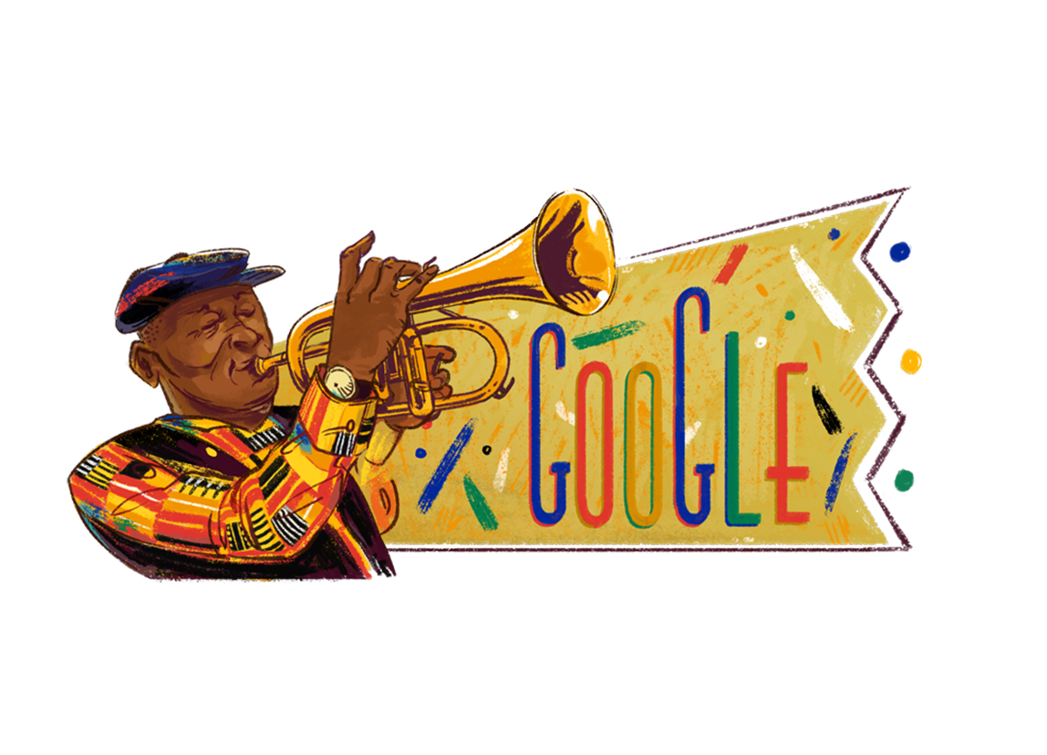 Today’s Doodle celebrates the world-renowned South African trumpeter, singer, bandleader, composer, and human rights advocate Hugh Masekela.