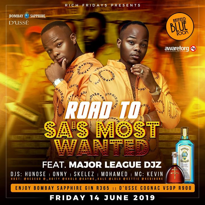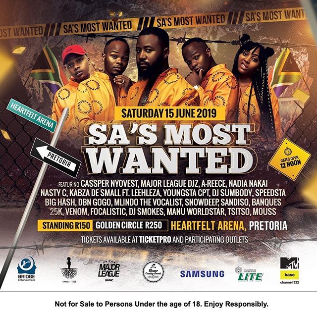 Bridge Entertainment, Major League, family Tree & Homecomingza present SA`s most wanted that will bring you good music, world-class entertainment, and crazy live performances. Gates open at 12:00 and the event start at 13:00. This will be an event to remember!