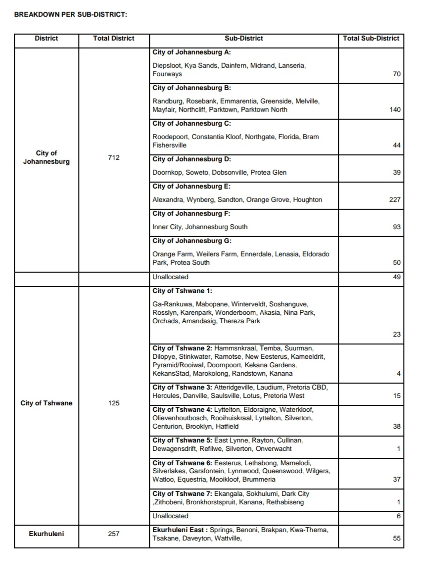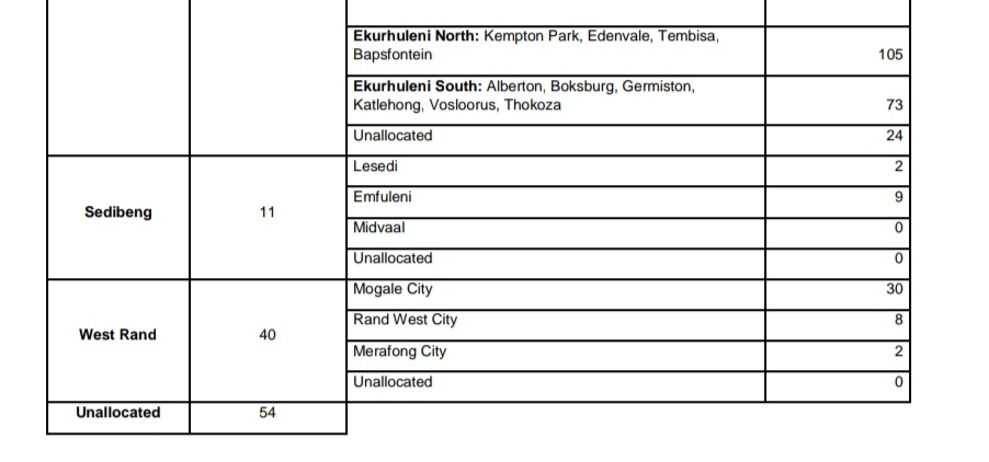More cases are recorded from Ekurhuleni (north)ย with 105ย cases from areas including Kempton Park, Edenvale, Tembisa, and Bapsfontein.