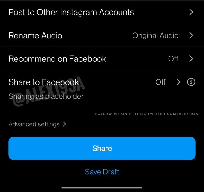 This is to extend users’ content to Facebook in just one click. The feature will give users the ability to post a reel and at the same time sharing it to their connected Facebook account.