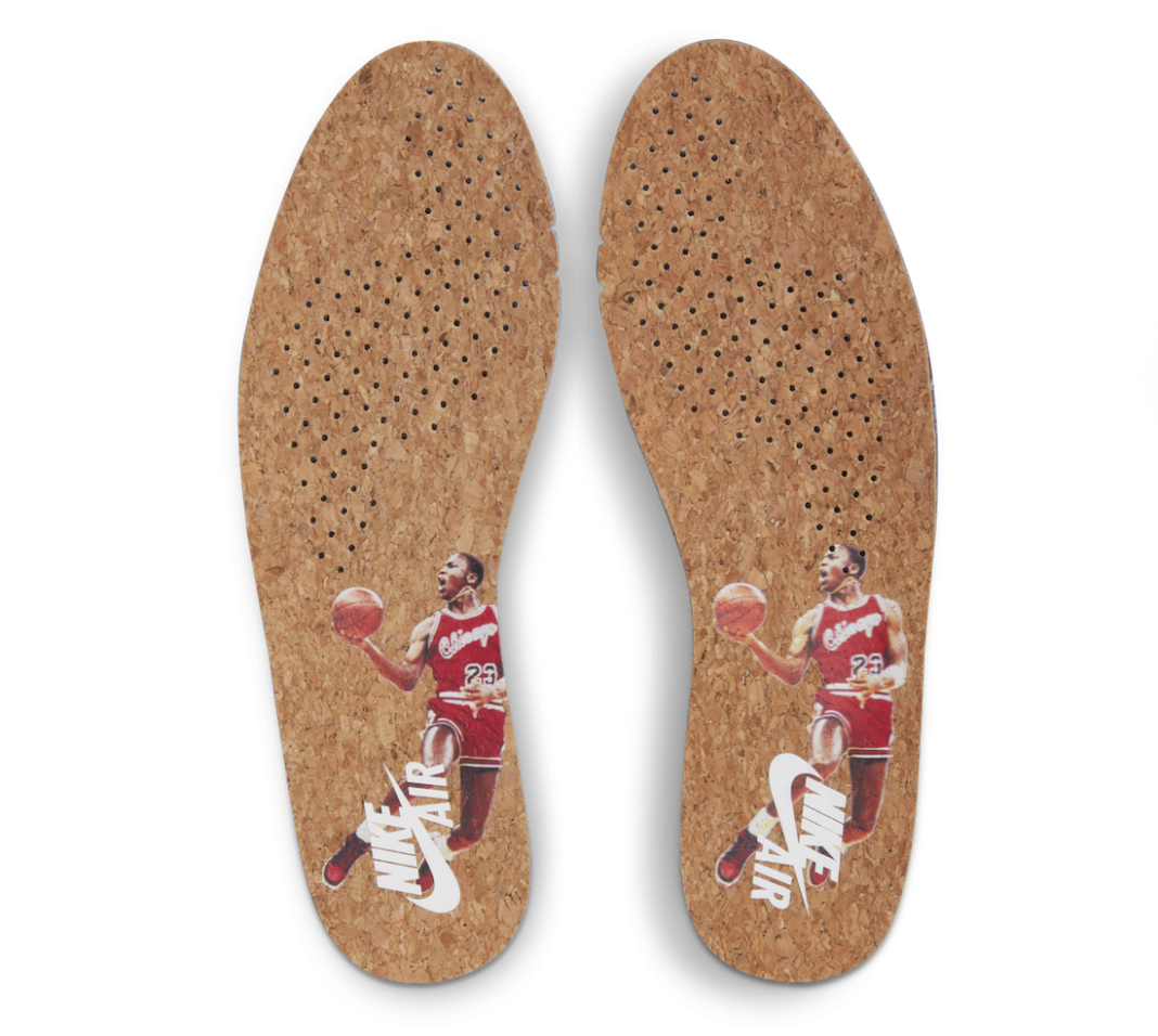 This women’s offering features a traditional Red and Black leather upper that rests atop a modified chunky platform sole done in White with Red bottoms. Additional details includes the outline of the “Wings” logo on the heel tab and cork insoles. Special Dunk Contrast graphic insoles and Jumpman Gold chain with extra laces completes the design.