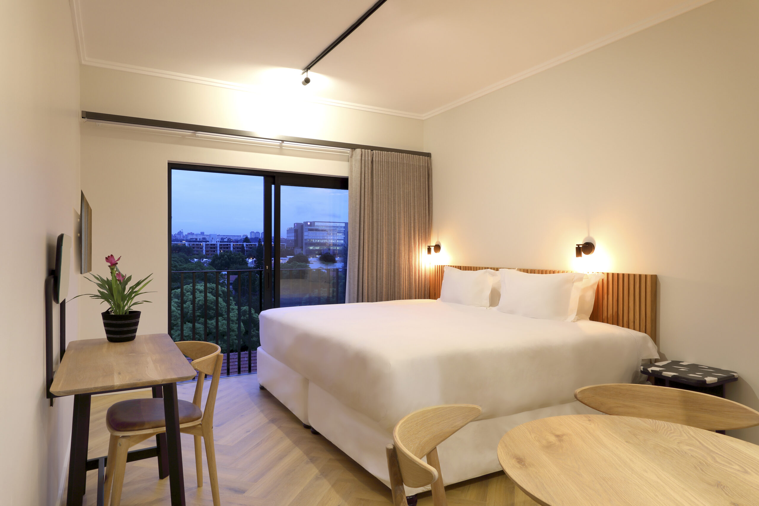 - Pool deck on the 8th floor, with skyline views of Johannesburg, a perfect backdrop for relaxing, inspiring sun-filled and sunset swims.