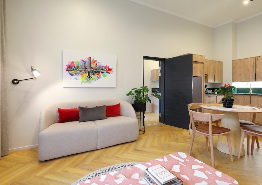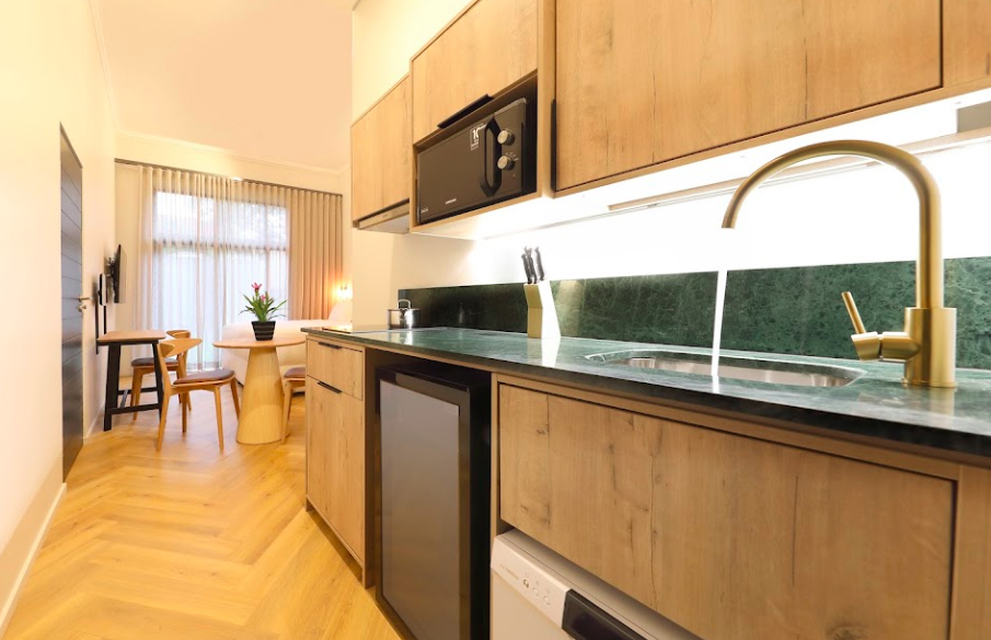 - 80 guestrooms, including 49 studio guestrooms and 31 apartment-style Kitchen Suites with fully equipped kitchens, comfy living rooms, spacious bedrooms, and stylish bathrooms.