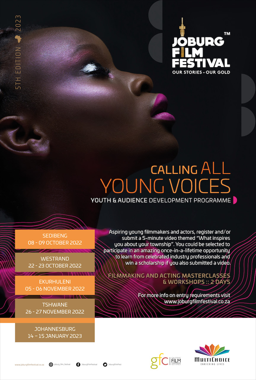 Participants are required to reside in the township/city hosting the event and have a valid Matric Certificate. Anyone between 18 – 35 is eligible to register to attend for free via joburgfilmfestival.co.za/youngvoices
