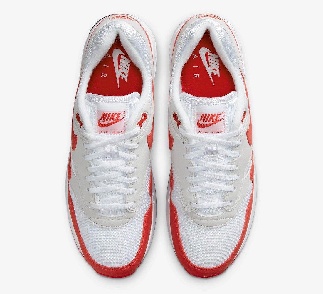 Dressed in a White, University Red, and Light Natural Grey color scheme. The retro release of the Nike Air Max 1 OG “Big Bubble” aka “Big Window” will return in its original build and color blocking. This Nike Air Max 1 features a White mesh base with Grey and Red suede overlays atop its signature bigger, longer visible Air unit.