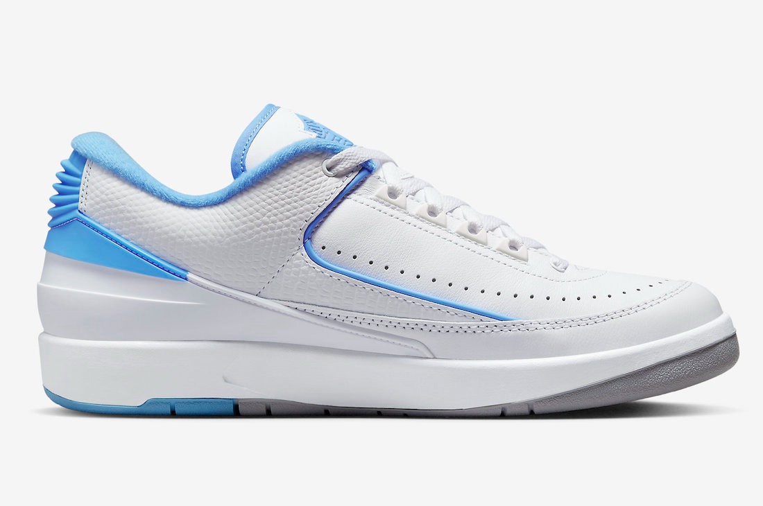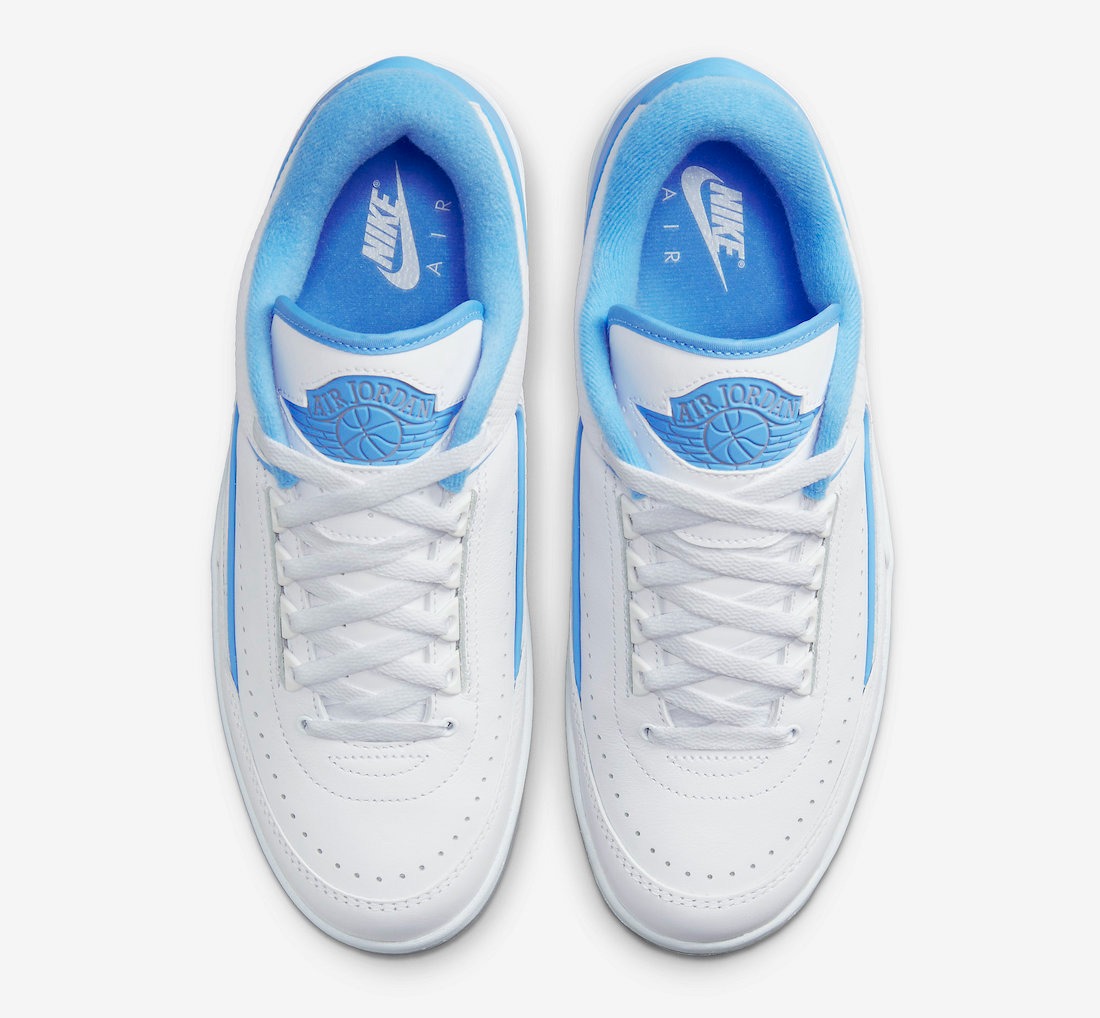 Up next is the Air Jordan 2 โUniversity Blueโ. This Air Jordan 2 Low resembles the low-top Michael Jordan wore during the Alumni game played on June 28, 1987.ย The shoe features a White leather base with University Blue contrasting accents atop a Cement Grey rubber outsole. The shoe will be available in menโs and grade school sizing.