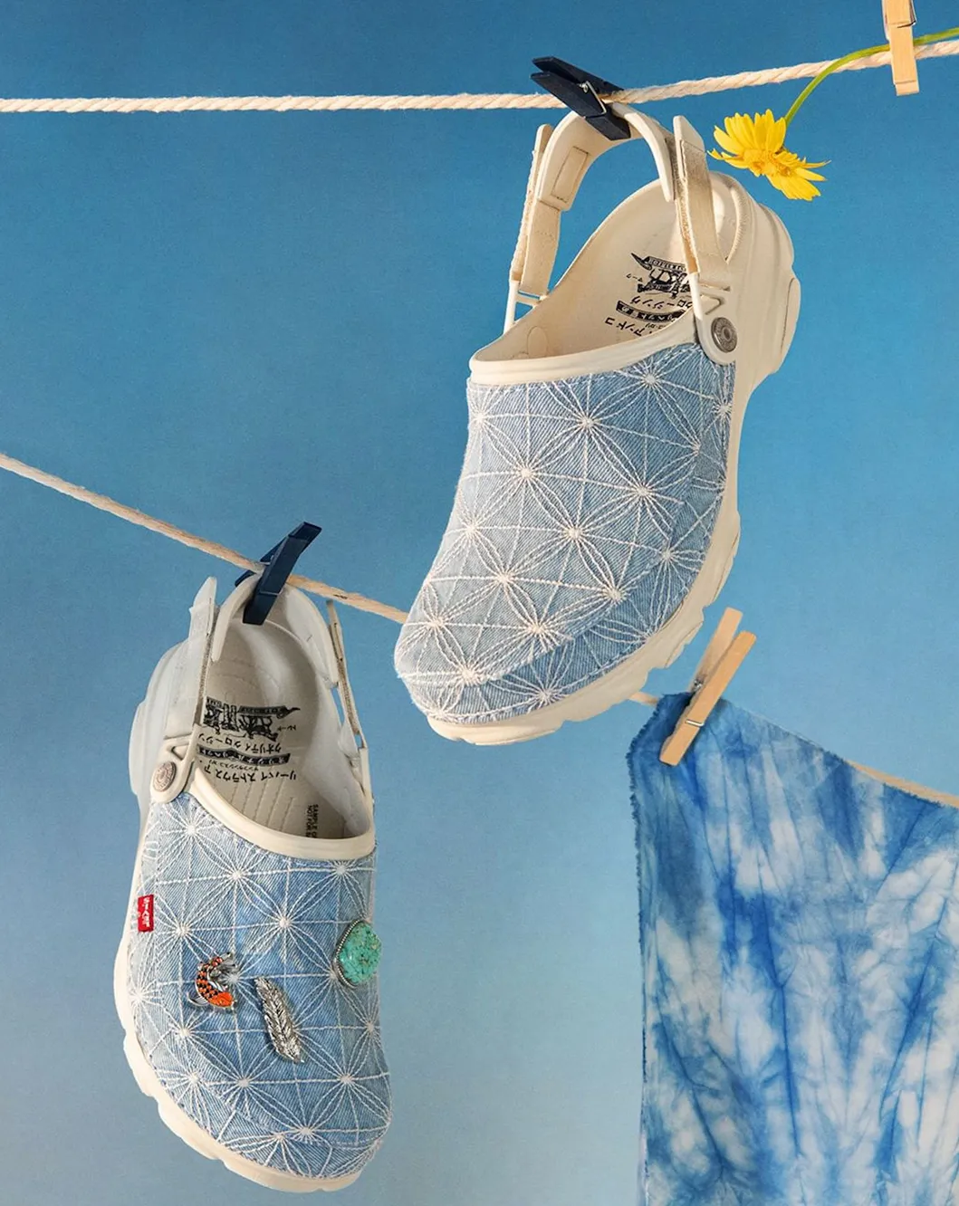 Levi’s has linked up with Crocs to introduce a stylish and comfortable twist on classic clogs, blending Levi’s timeless style with Crocs’ innovation for a fresh footwear choice.