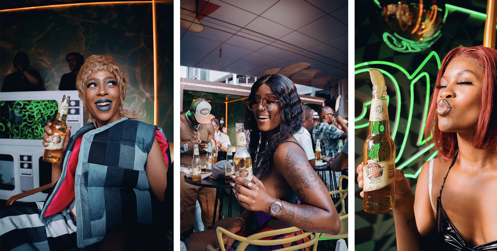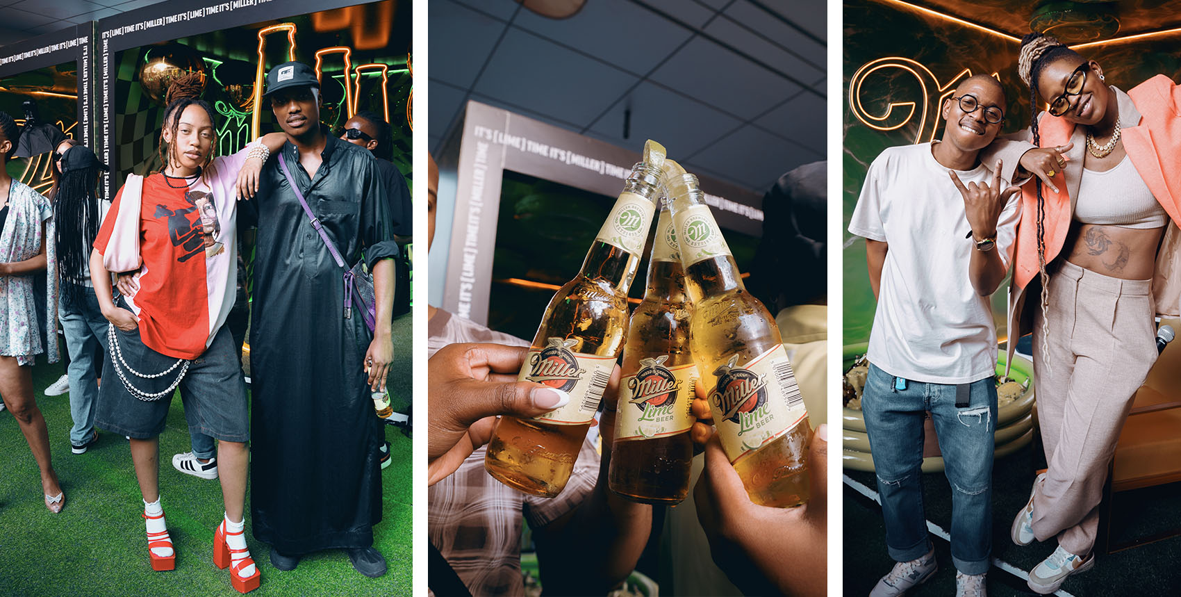 The grand unveiling took place at The Zone Rosebank, where Miller went all out with a lively launch party that seamlessly blended the afternoon-to-night transition. The venue buzzed with energy as Joburg’s influencers and socialites flocked to witness the birth of a new flavor. The party featured a massive installation, live music DJ sets, socializing, content snapping, and, of course, an introduction to the star of the show – Miller Lime.