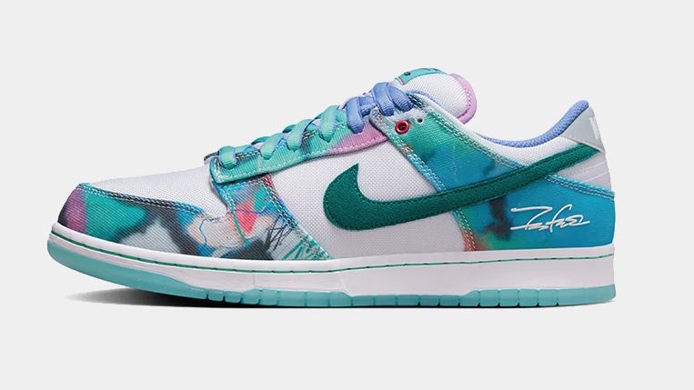 The Futura Laboratories Dunk bleached canvas as the upper, with detailed and colourful overlays, puff-print details, custom tongue labels, insole art, and a translucent sole revealing Futuraโs iconic signature. Finished with contrast stitching and two-toned coordinated pastel laces, the Futura Laboratories Dunk marks the return to the original Dunk SB Low side-toe construction, calling back to his long-standing relationship with Nike SB.