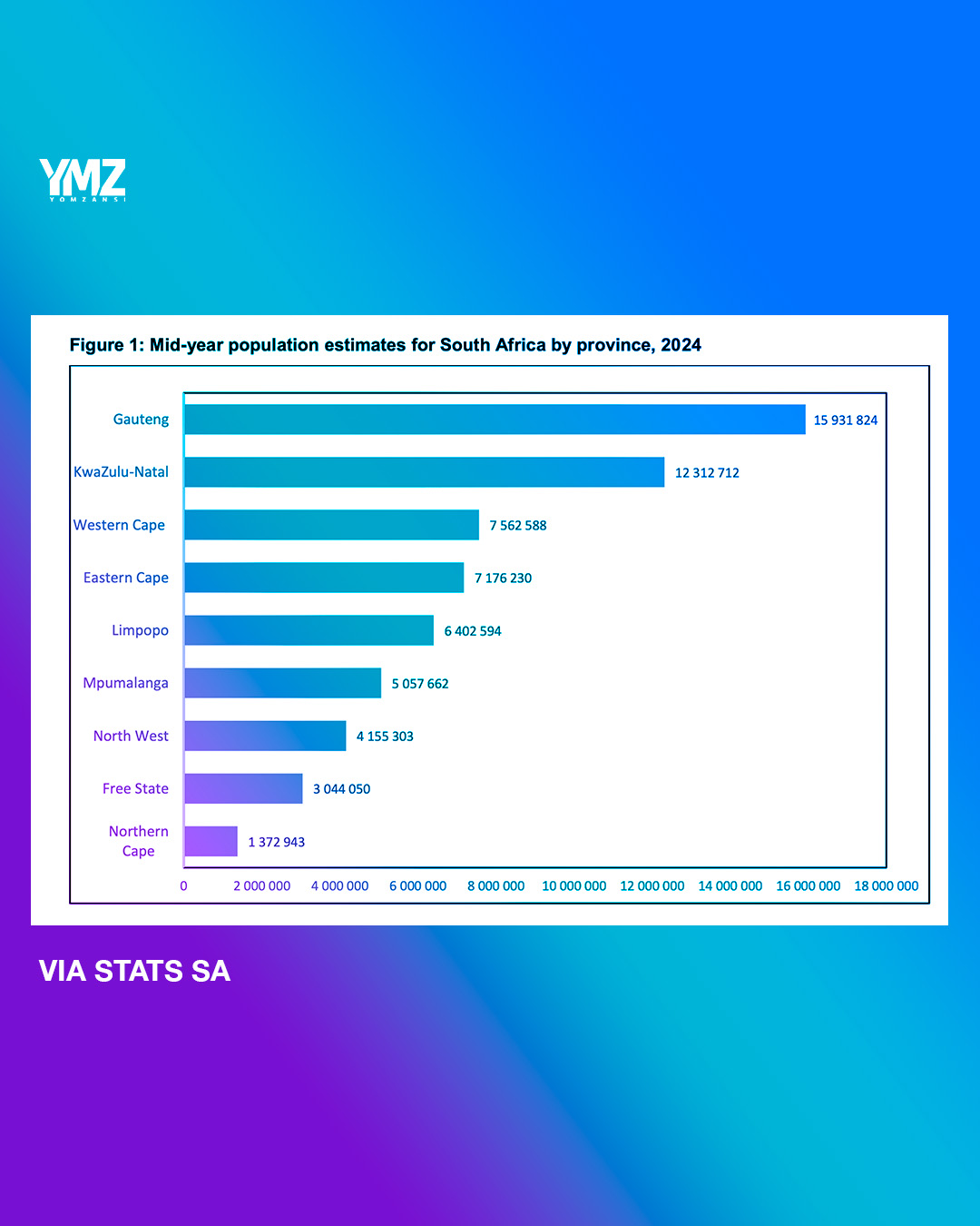 According to the mid-year population estimates by Stats SA, South Africa’s population has grown by 835,513 within a year and now has a total of 63 million.