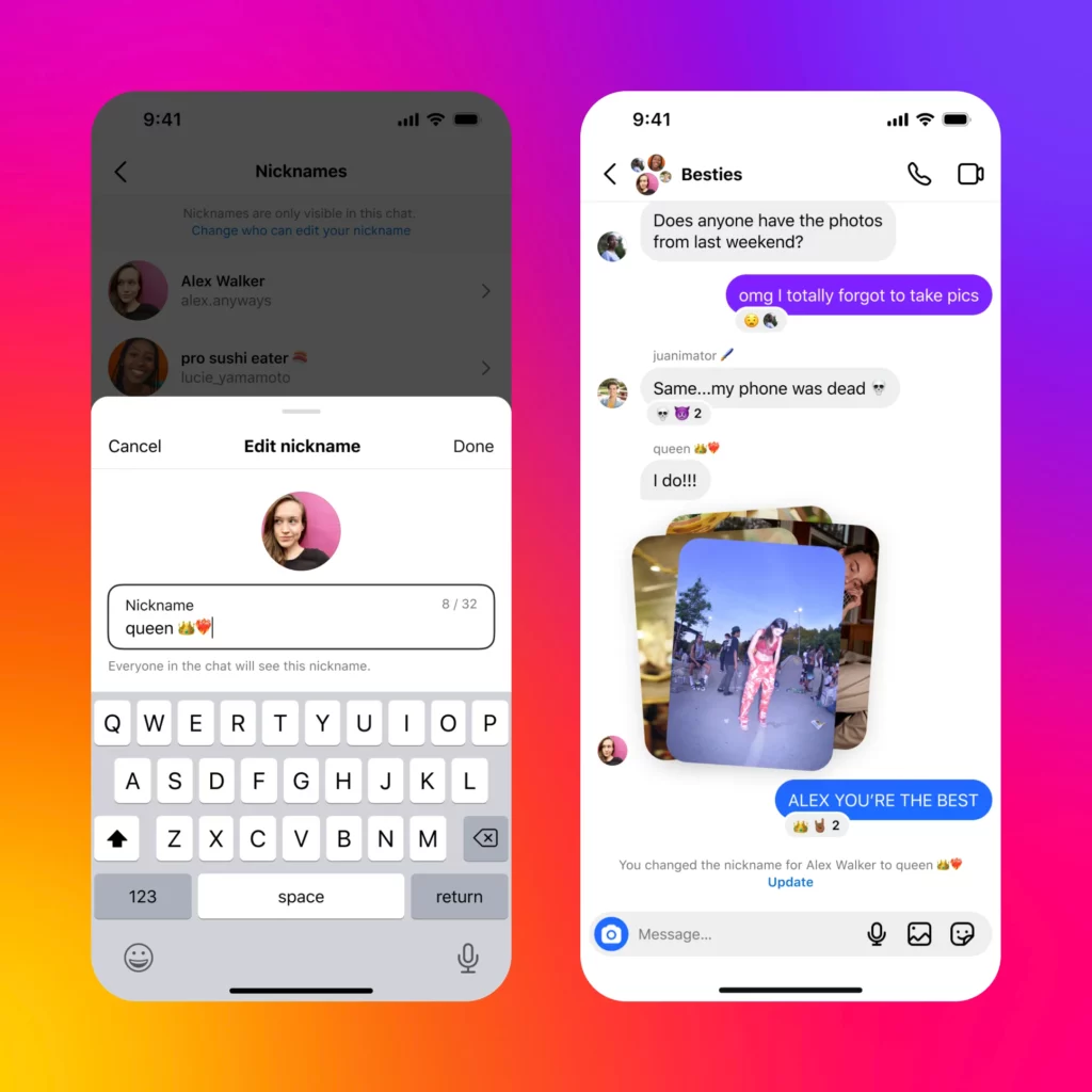 Adding to that, Instagram now lets you create nicknames for yourself and your friends in DMs. These nicknames are private and appear only in your chat conversations.