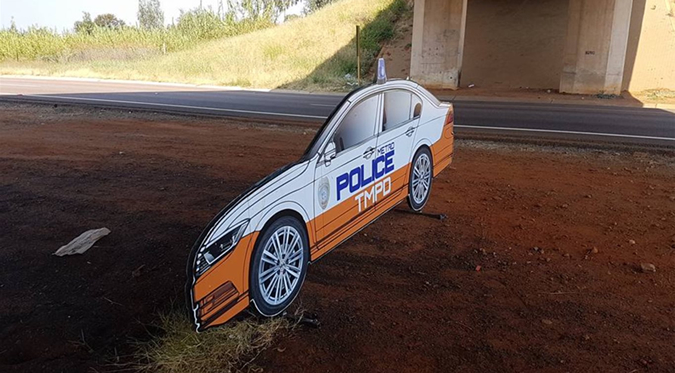 A road user shared photos of what looks like a Cardboard Metro Police car on his Facebook page earlier in…